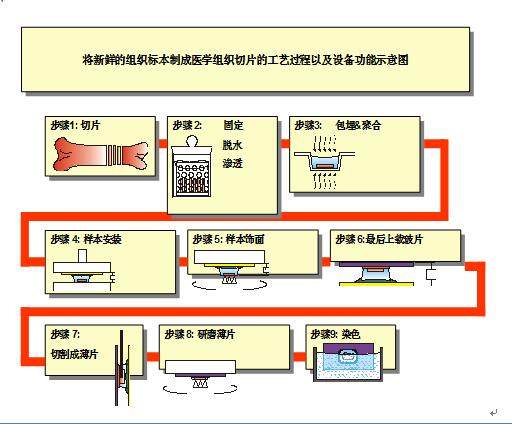 2、EXAKT硬組織切磨片系統(tǒng)特殊的技術(shù)設(shè)計、技術(shù)配置以及獨特的工藝方法,均與常規(guī)設(shè)備和工藝不同。新鮮的不脫鈣骨組織標(biāo)本經(jīng)過固定及脫水處理后,用光固化樹脂浸透、包埋、再行鋸片、磨片、染色等步驟制成厚約10μm的醫(yī)學(xué)組織切片。